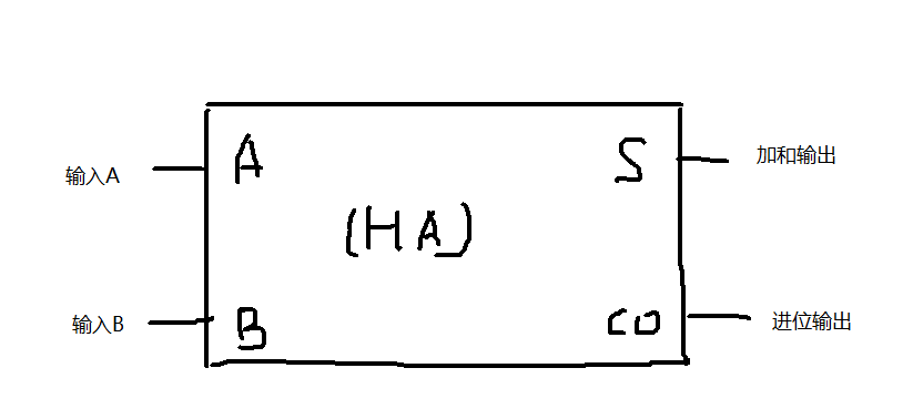 其实,8位还是有点多,首先我们先实现一位相加的加法器。也就是两个输入(两个加数)对应两个输出(加法位与进位位)。